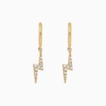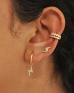 The Baby Bolt Earrings features a sparkling CZ pave lighting bolt, set on a dainty gold huggie. Perfect for stacking, pair them with our matching Bolt Stud for the complete look.