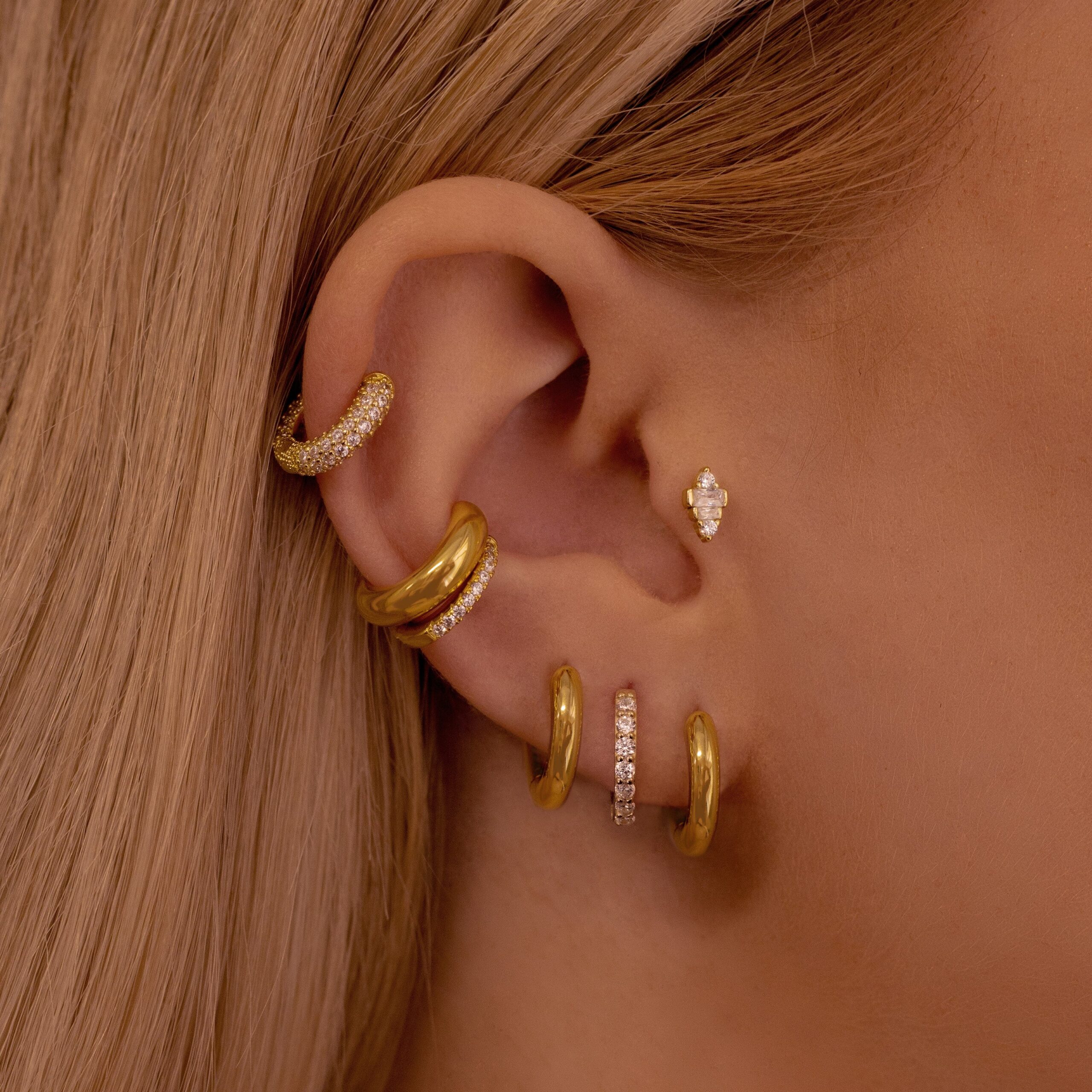 Save 20% when buying them together. A match made in heaven, the Classic Gold Huggie Earring Set.