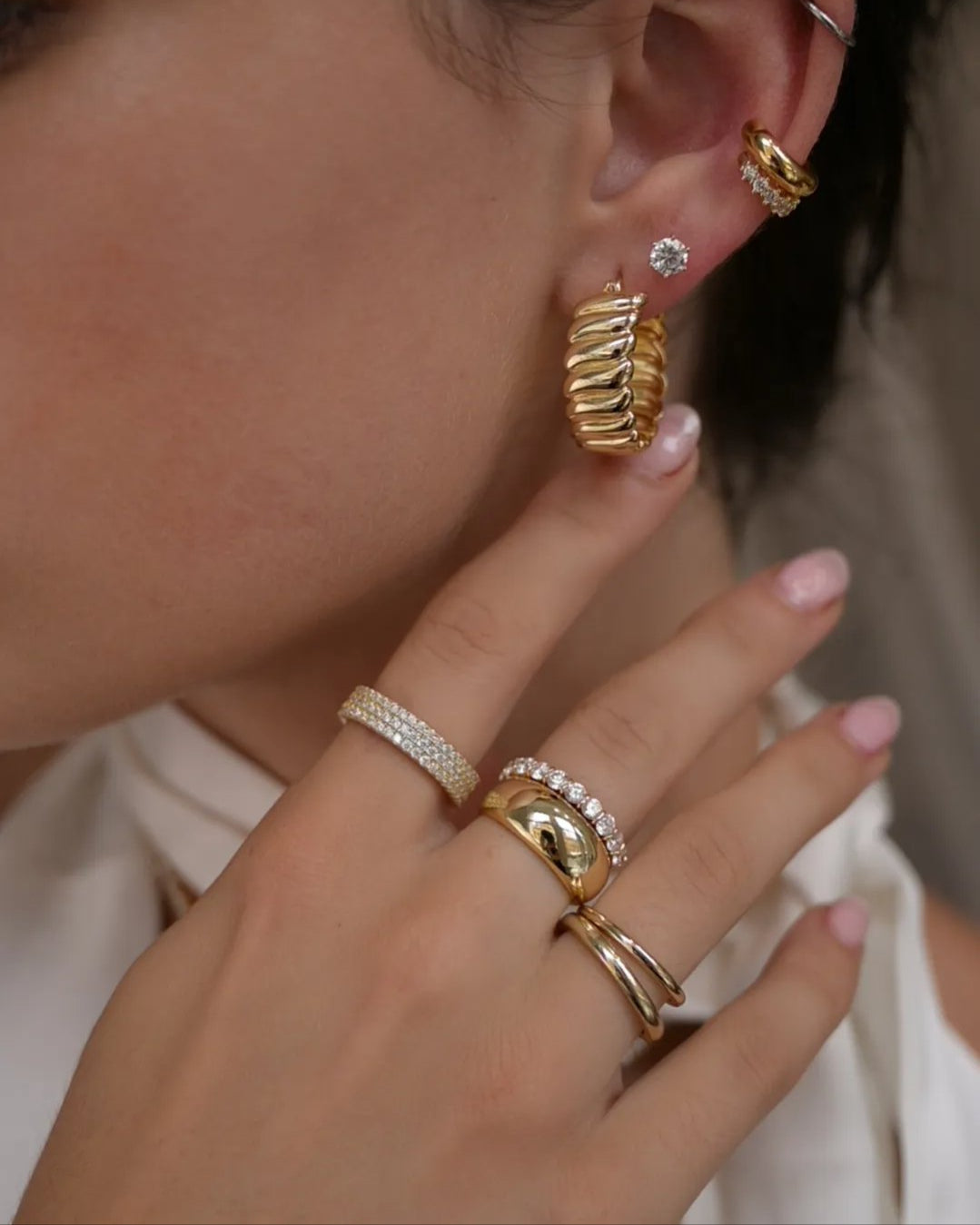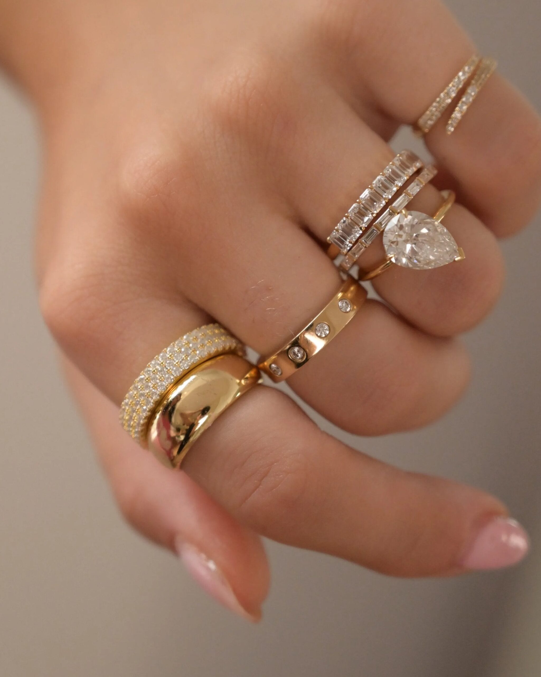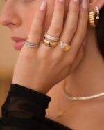 The pave cigar band is handcrafted in 18k gold vermeil features endless row of sparkling stones. Pair it with daintier rings to create a basic stack.