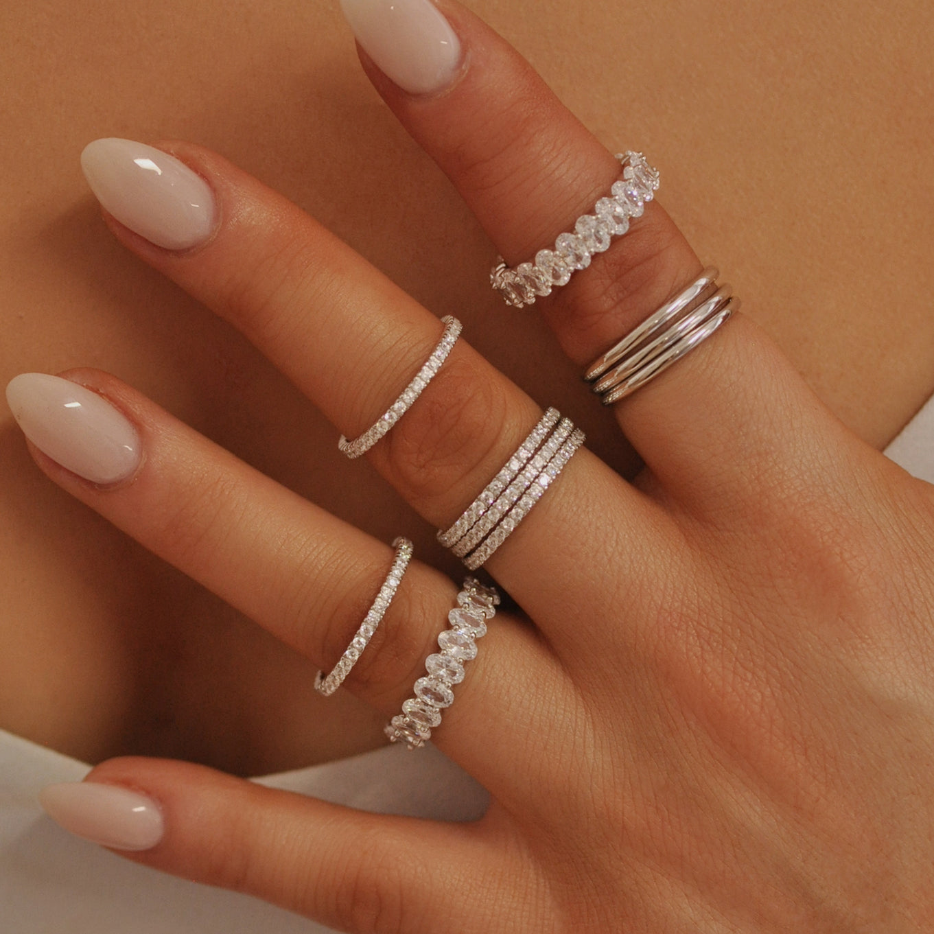 The perfect match. Includes one Silver Stacker Ring and one Silver Eternity Band Ring.